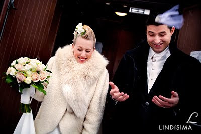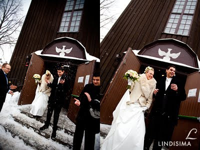 Hotell Hellsten), have rice mixed with lavender thrown at you after the ceremony, scented flowers in your hair and bouquet, pick a winter day when it's -10 degrees and snowing, choose a photographer equipped with tons of inspiration, have warm soup for the guests after the cold trip from the church and - I think this is a main ingredient :-) - talk your parents into dancing Thriller together with you in front of all other guests after dinner!